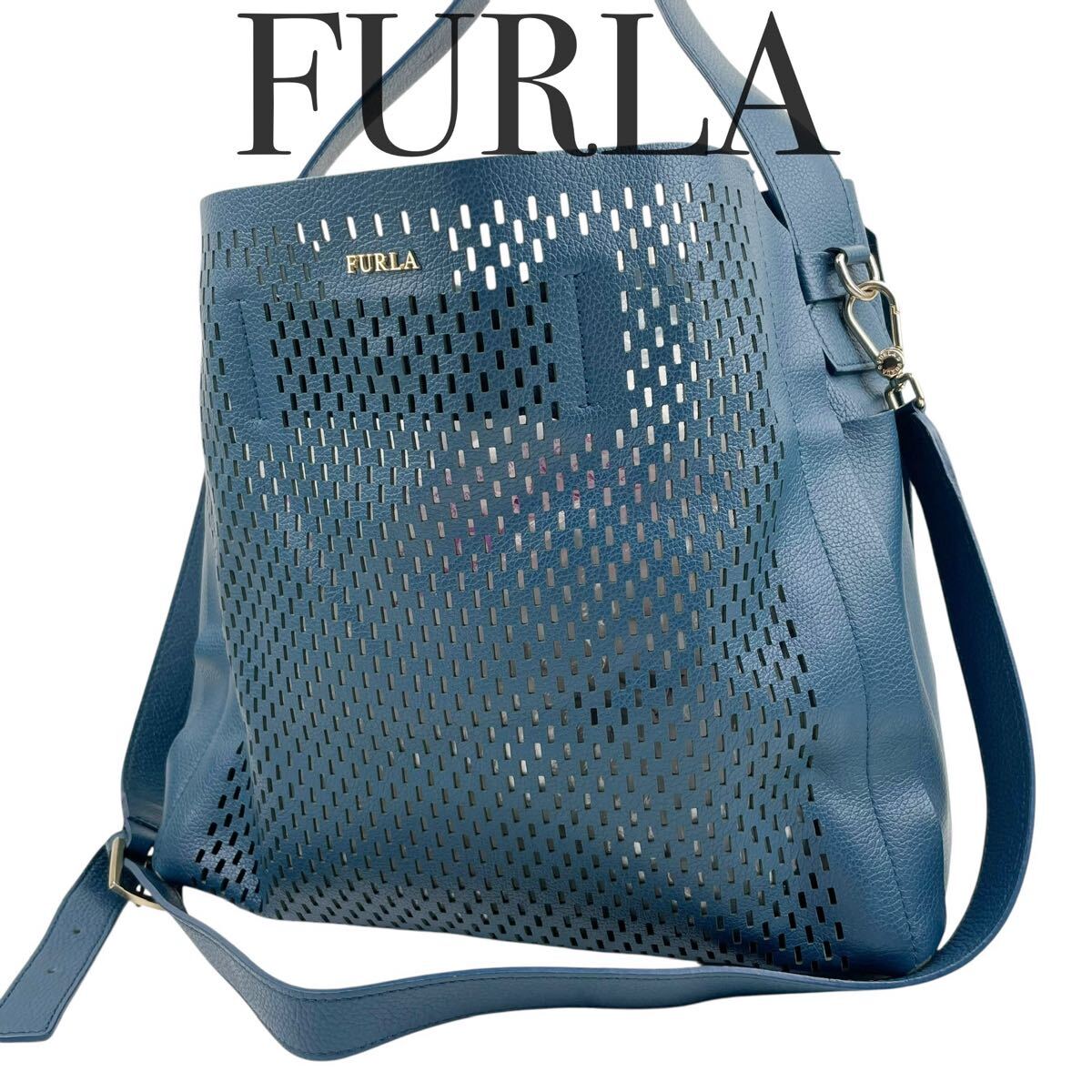 - 美品 FURLA フルラ 2way カプリッチョ ホーボー ショルダーバッグ ハンドバッグ トートバッグ F6852 ブルー 青 ワンショルダー