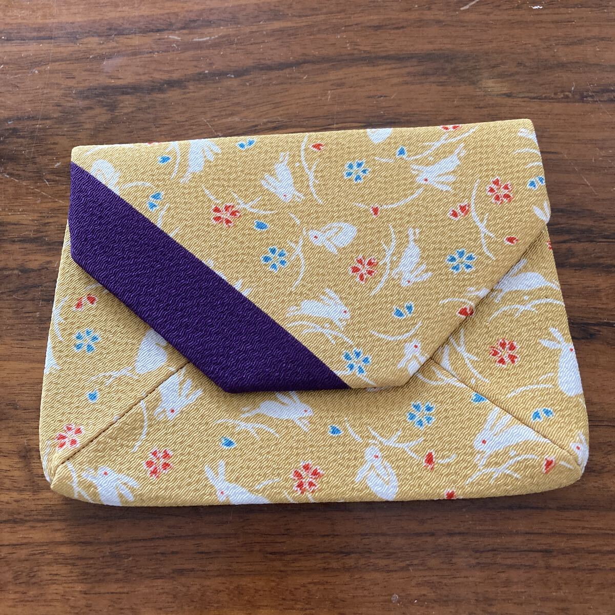 - 数珠袋 茶道具 ポーチ 小物入れ 浴衣 うさぎ きいろ 山吹色 保冷剤入れ メガネ 薬 懐紙 ハサミ