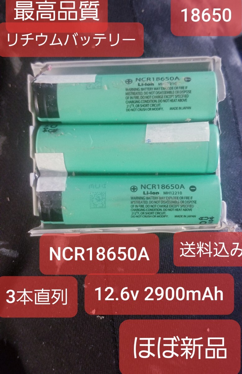 > 送料込みほぼ新品の日本製、高品質リチウムバッテリー NCR 18650 3本直列 12,6v 2900mAh抵抗30mΩ以下(ほぼ新品)