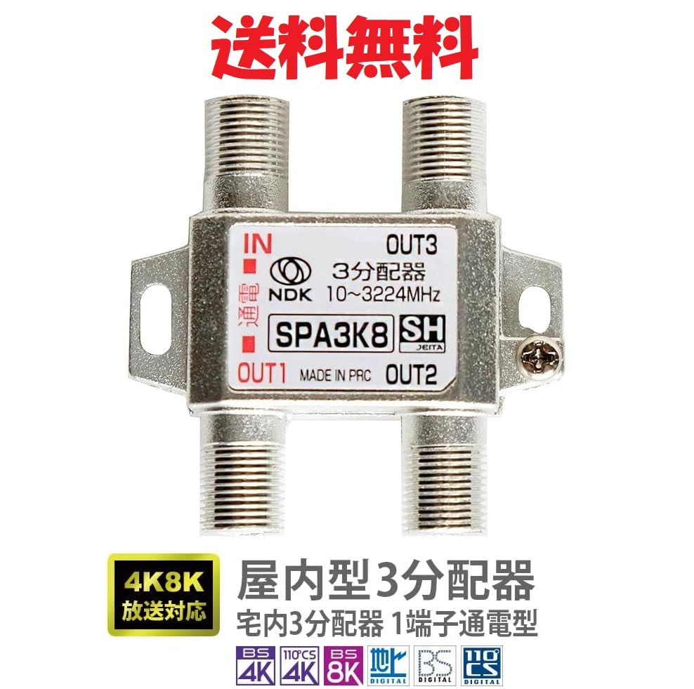 > 送料無料【簡易包装・未使用品】3分配器(4K8K対応/1端子電流通過型/10~3224MHz対応/屋内用)▲■TVアンテナ分配器