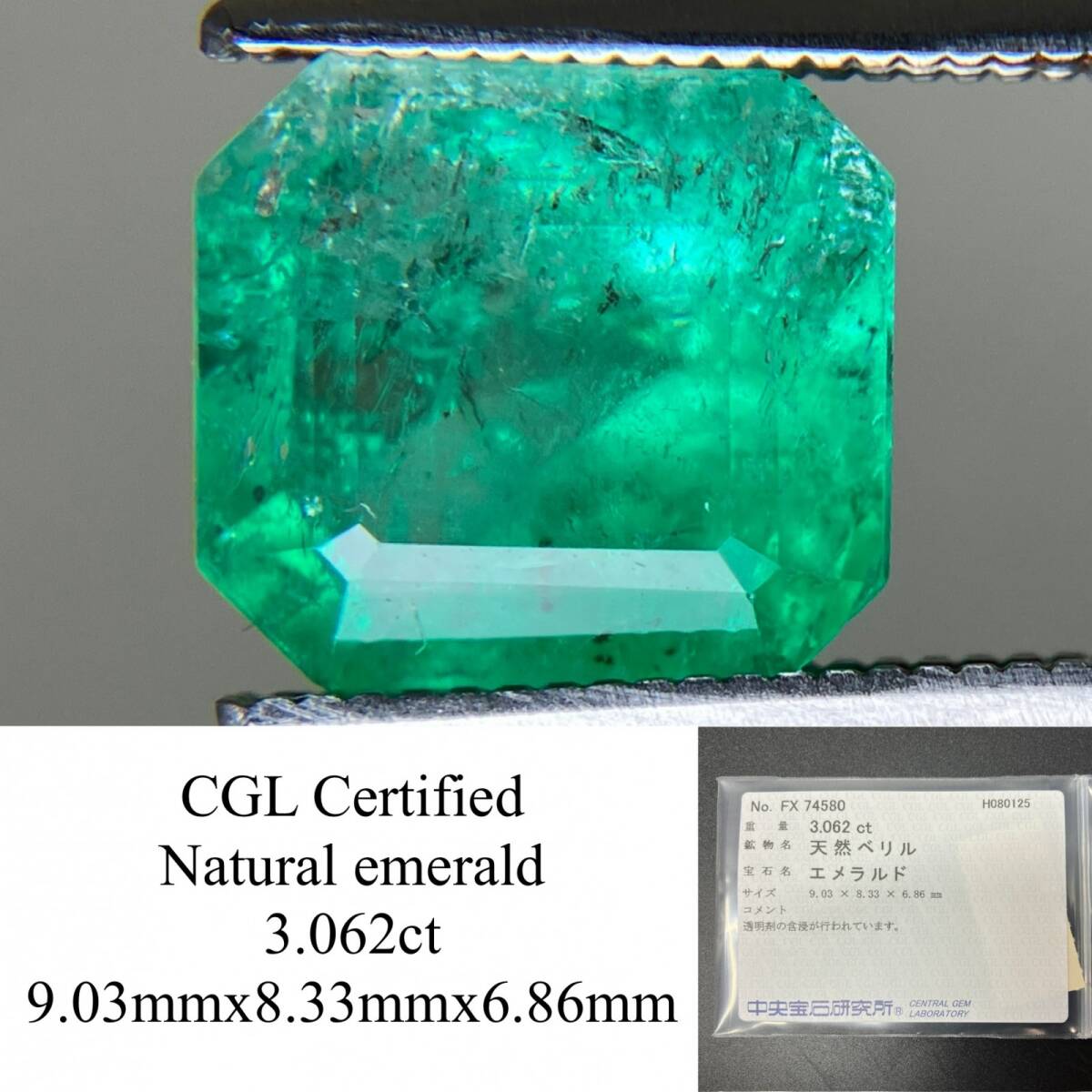 > エメラルド 天然 3.062ct 中央宝石ソーティング付き 9.03×8.33×6.86 ルース( 裸石 ) 6233YY