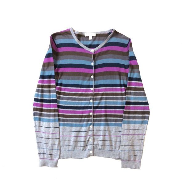 > JOHN SMEDLEY ジョンスメドレー ボーダー カーディガン コットンニット セーター 薄手 レディース M 送料250円 (ma)