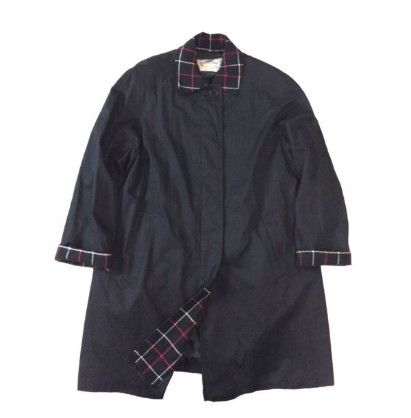 > Aquascutum アクアスキュータム ENGLAND製 ステンカラーコート ジャケット チェック切り替え コート 黒 ブラック レディース