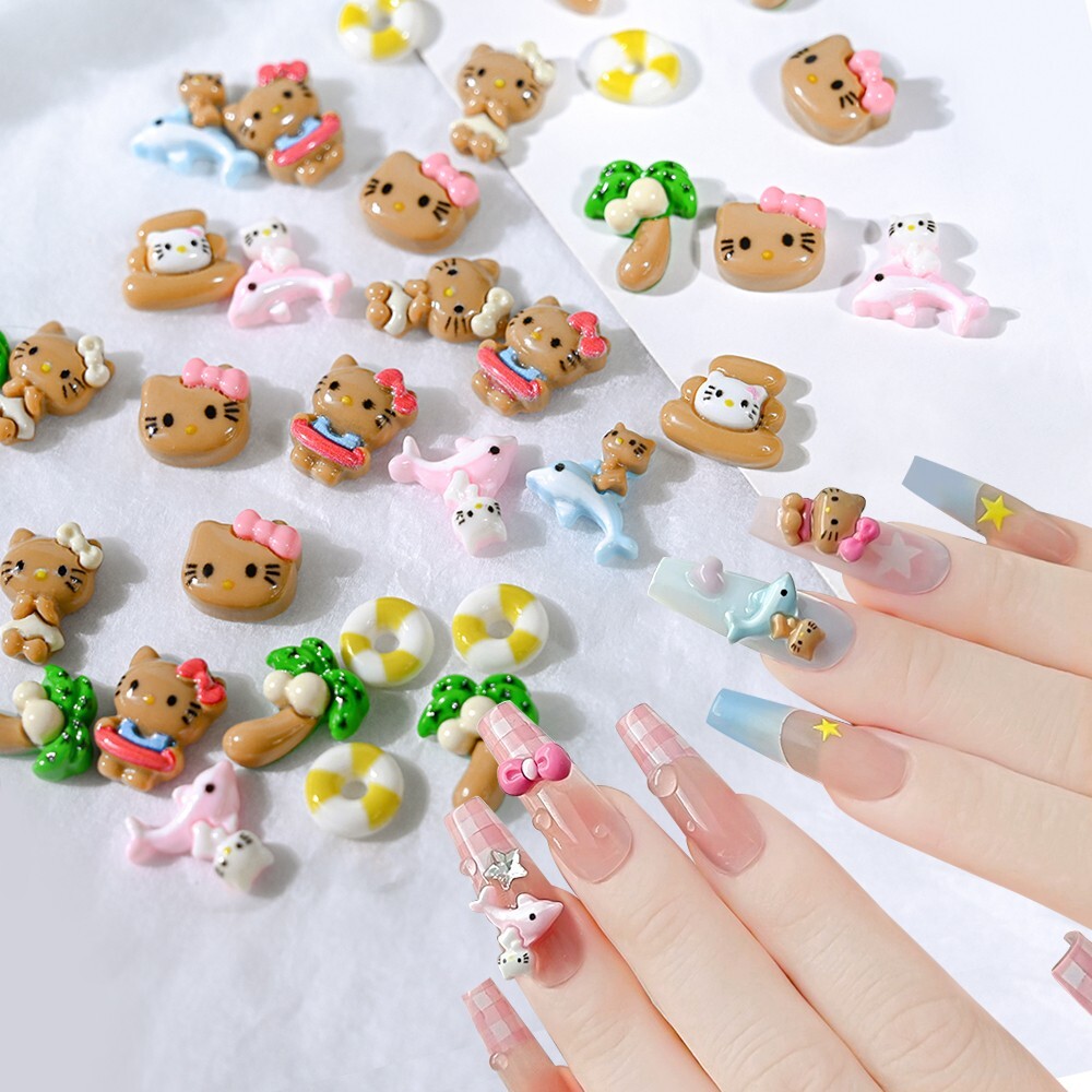 - 日焼けキティちゃん デコレーションパーツ 100個セット デコパーツ プラパーツ デコネイル 材料 ハンドメイド ハローキティ