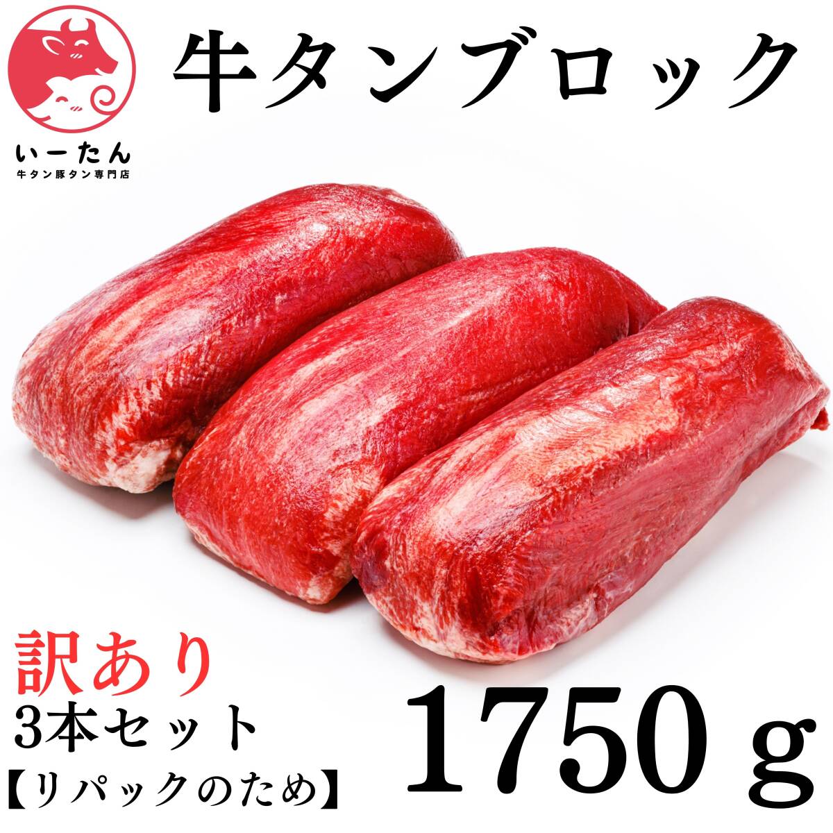 - 【傷あり(リパック)のため特別価格】3本セット 牛タンブロック(1750g) いーたん(e-tan) 業務用 塊肉 牛肉 ステーキ 肉