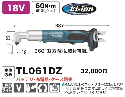 > マキタ 充電式アングルインパクトドライバ TL061DZ 本体のみ 18V 新品