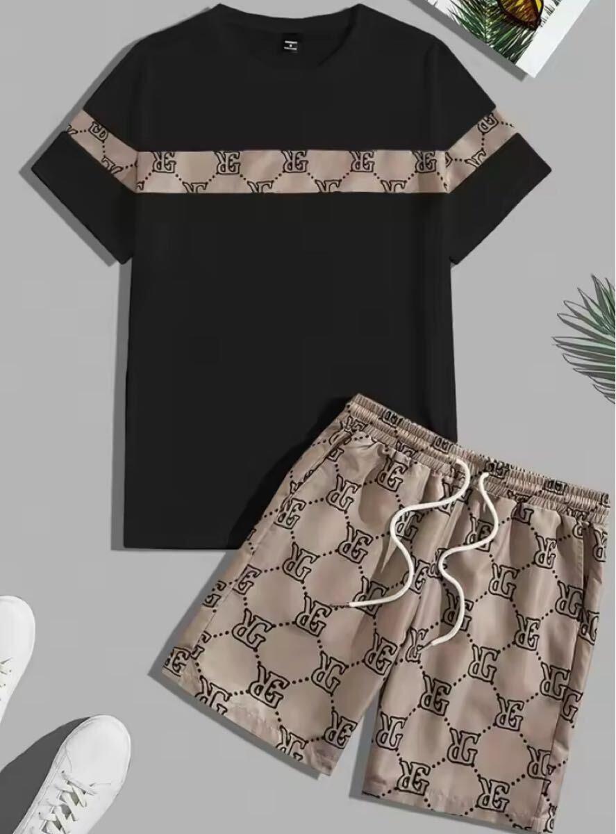 - メンズ セットアップ Tシャツ ブラック 短パン 半ズボン 派手 高級 ブランド 上下セット 柄 高見え おしゃれー シンプル