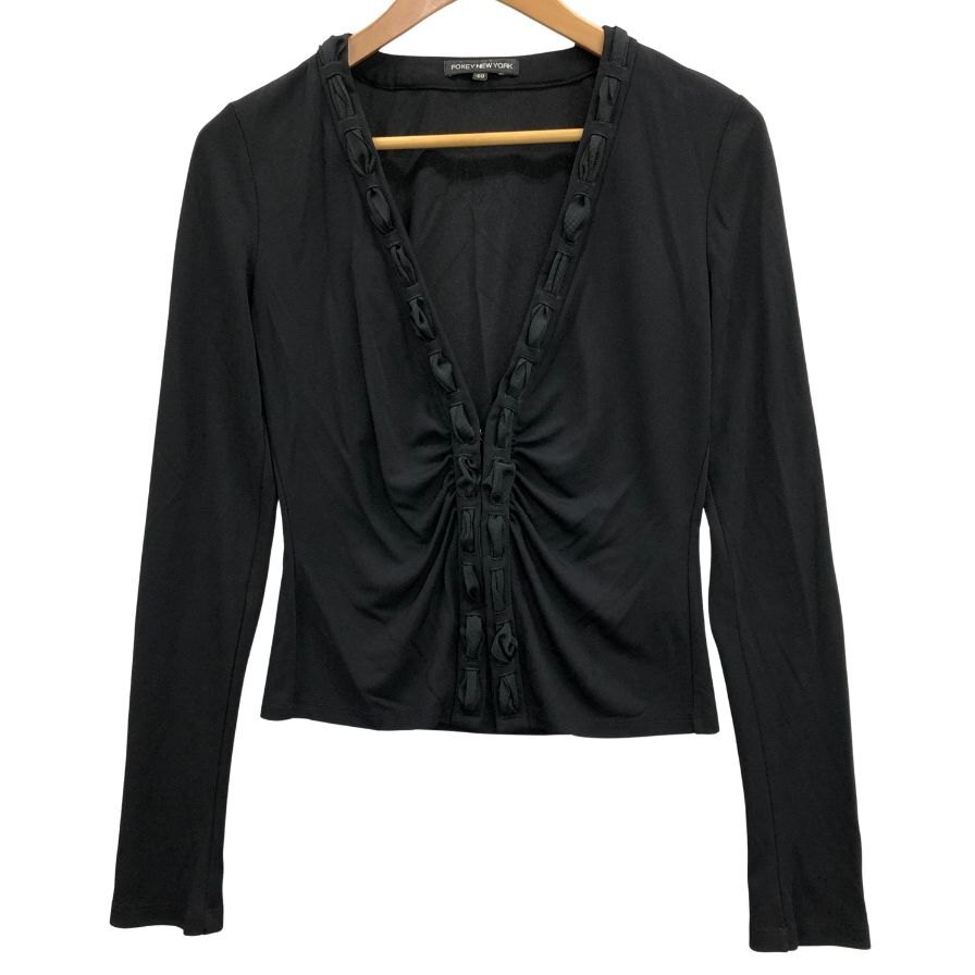 > 美品◆カーディガン フォクシーニューヨーク マットストレッチ ジャージ カーディガン ダークネイビー 40サイズ 21366 【AFB35】