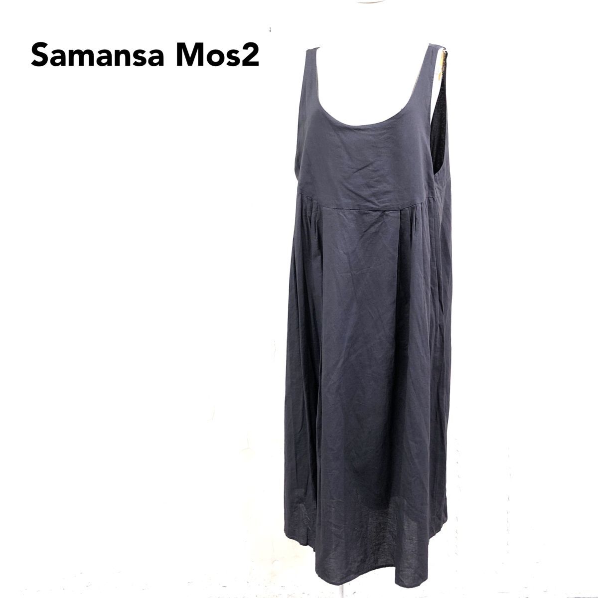 > 2H2005-W-N◆Samansa Mos2 サマンサモスモス SM2 コットンリネン ワンピース 裏地なし ノースリーブ ナチュラル系◆size:M ダークグレー 麻