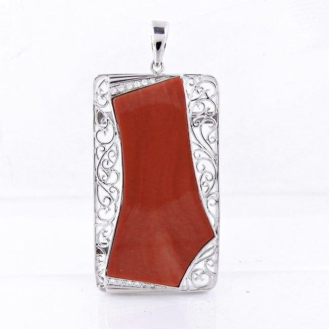 - K18WG ★ペンダントトップ サンゴ ◇ダイヤモンド0.11ct ◆鑑別書付き 【中古】 /mj333 /24832