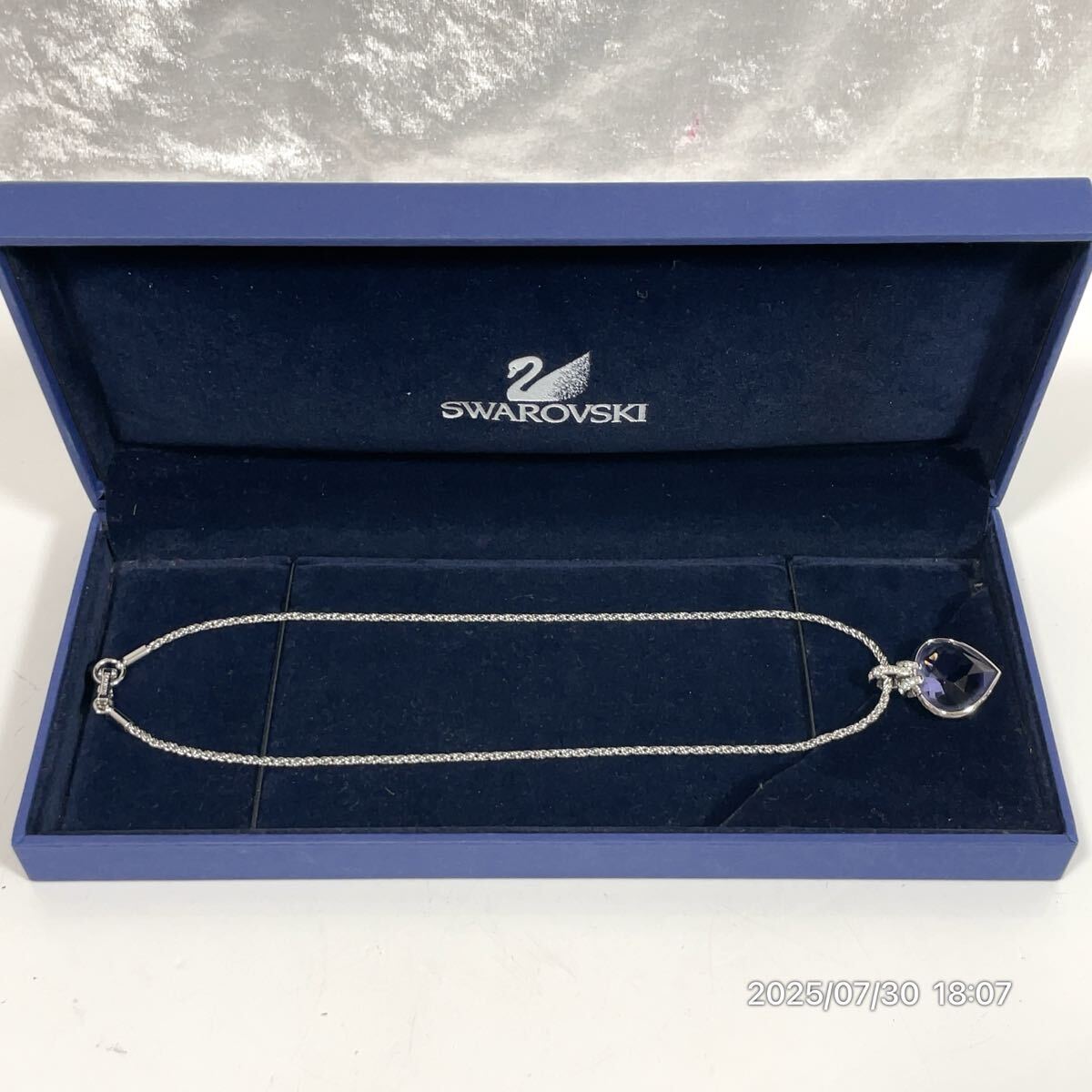 > 美品 SWAROVSKI スワロフスキー クリスタル ラインストーン シルバー×パープルカラー ネックレス ペンダント アクセサリー 装飾品 箱付き