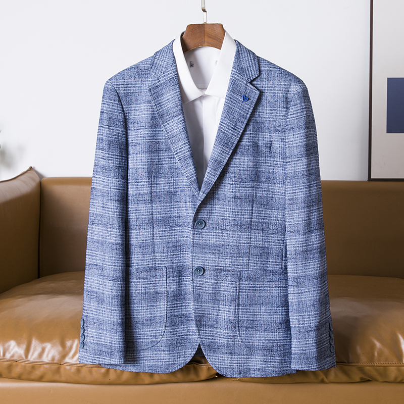 - 新入荷 人気2XLテンセル混テーラードジャケット メンズ ストライプ ノーアイロン 防シワ スーツ 春夏 薄手 サマージャケット/ブルーグレー