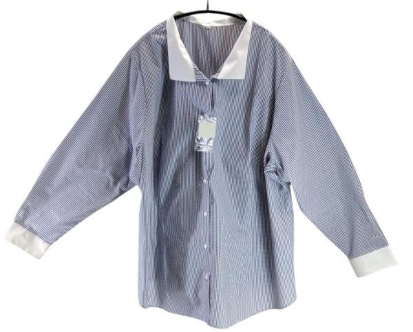 > SS2779◆ 新品 長袖 シャツ ストライプ 前ボタン 剣ボロ 襟付き ラウンドテール 6Lサイズ 青 ブルー 送料450円
