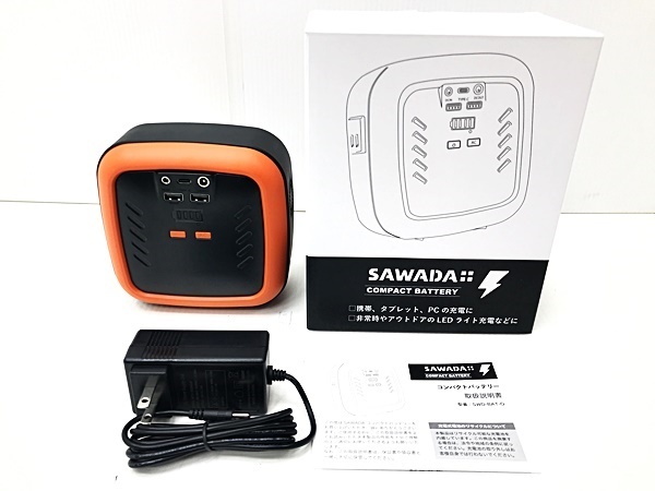 - 下松)SAWADA コンパクトバッテリー ポータブル電源 SWD-BAT-O AC電圧110V アウトドア 防災 ▼★250818A07A NH18A