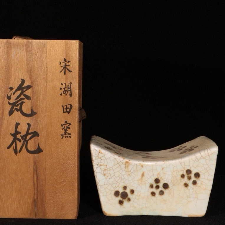 - 宋時代 唐物 湖田窯 磁器枕 共箱付き 陶磁器 中国美術 古美術 置物 高さ8 cm 直径14.5 cm 819