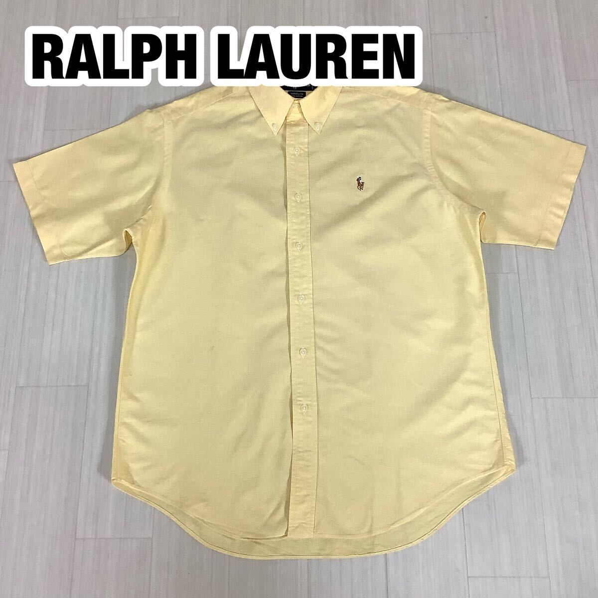 > RALPH LAUREN ラルフローレン 半袖シャツ サイズ41 ライトイエロー ボタンダウン 刺繍ポニー カラーポニー