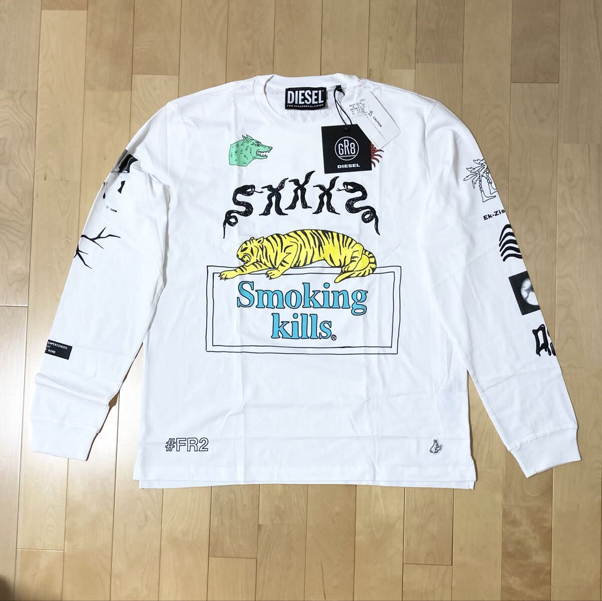 - 未使用☆XL [DIESEL×GR8×FR2] 20SS Smoking Kills ロングスリーブ 長袖Tシャツ XL ホワイト D8.8-FR-TS06 ディーゼル エフアールツー