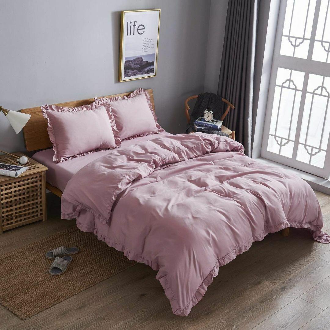 - 1-22★布団カバー シングル 3点セット フリル ピーチ シーツ 枕