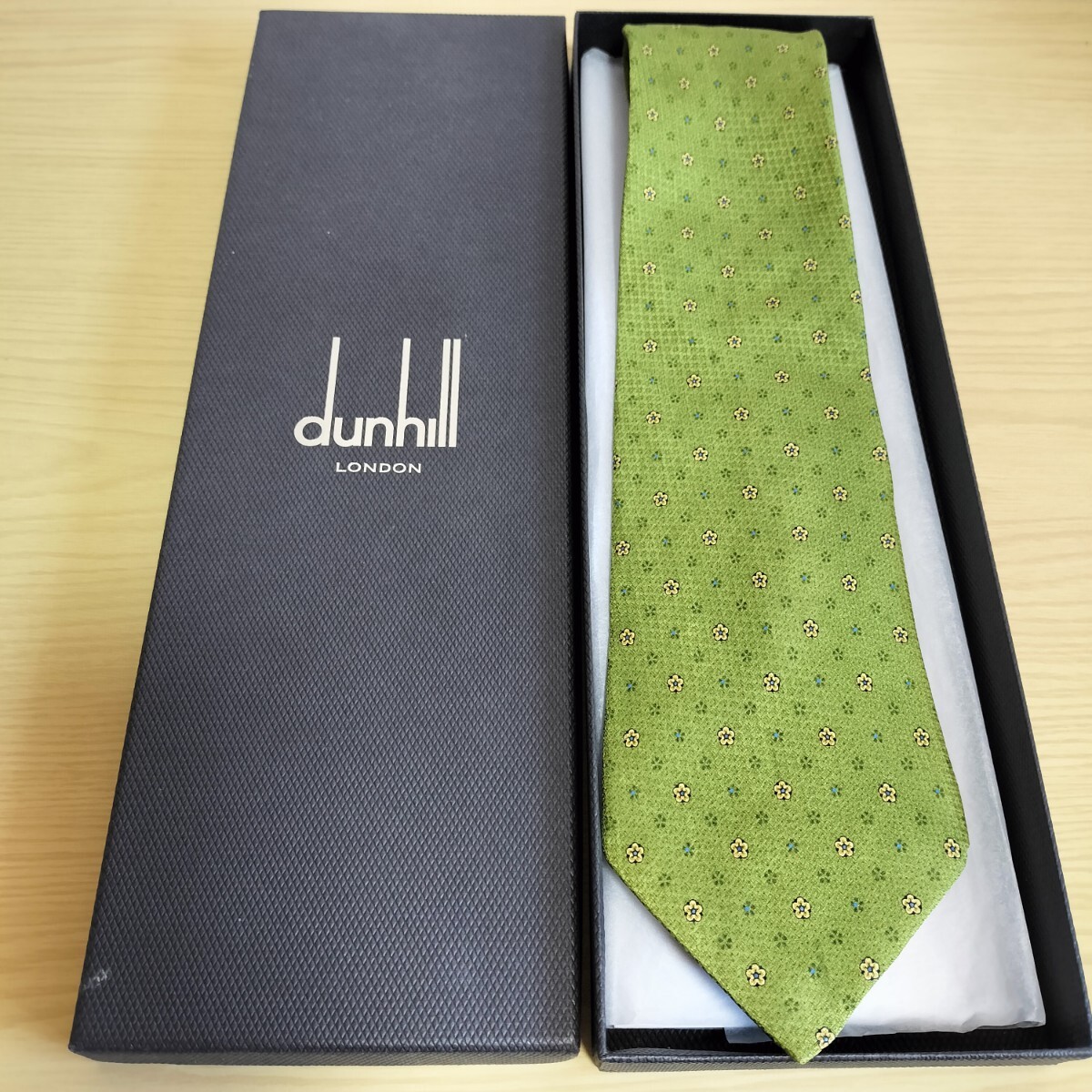 - ダンヒル(Dunhill)緑花びらドット模様ネクタイ