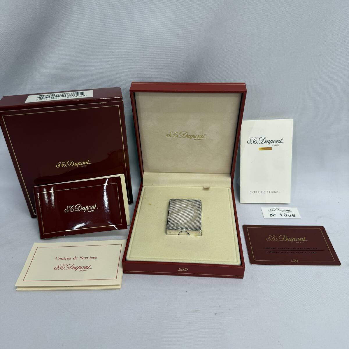 - 【ジャンク】 S.T.Dupont デュポン ライン2 シルバー ロゴデザインモチーフ ガスライター 火花確認 箱付き ギャランティーカードあり