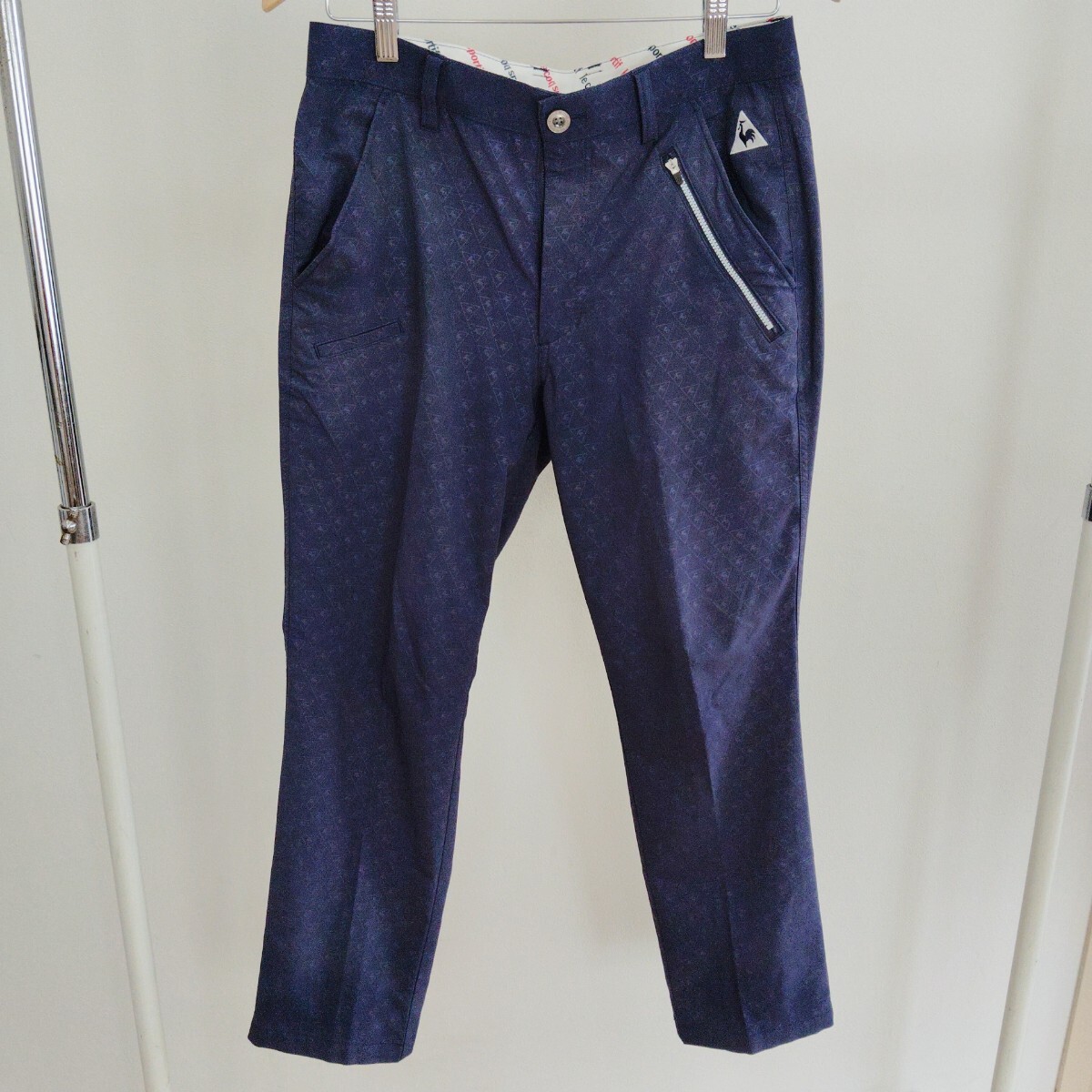 - 0820/79/lecoqsportif メンズ ロングパンツ センタープレス 総柄 ゴルフウェア ネイビー