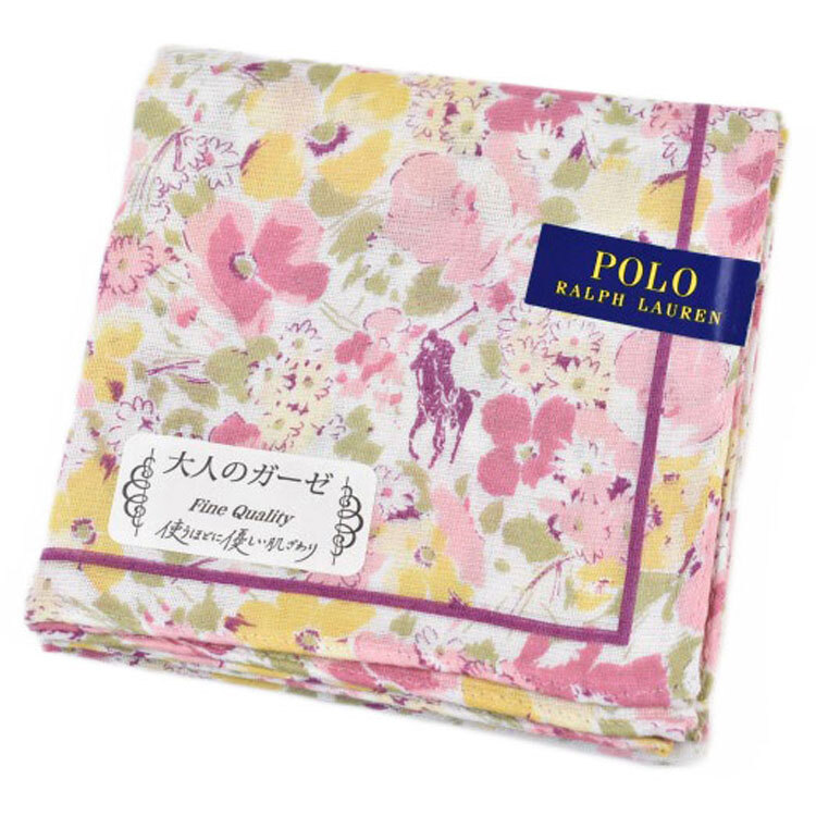 - ハンカチ レディース ハンカチギフト ポロ ラルフローレン ガーゼ 綿 高級 ブランド ピンク フラワー 花 ロゴ