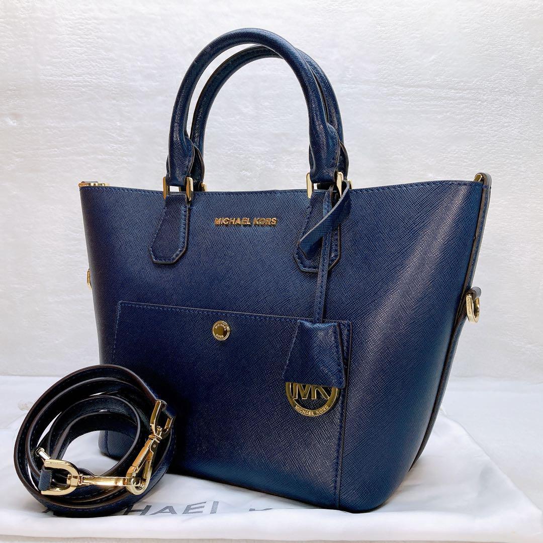 - 美品マイケルコース 2wayショルダーバッグ レザー ロゴ ネイビー ロゴ