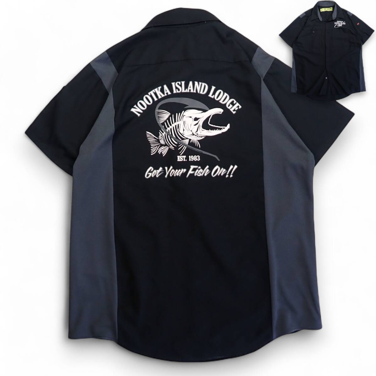 > 6968/美品 RED KAP 半袖 ワークシャツ L●魚の骨 Hooked on NOOTKA ISLAND LODGE fish bones●洗濯プレス済ネコポス可●レッドキャップ古着
