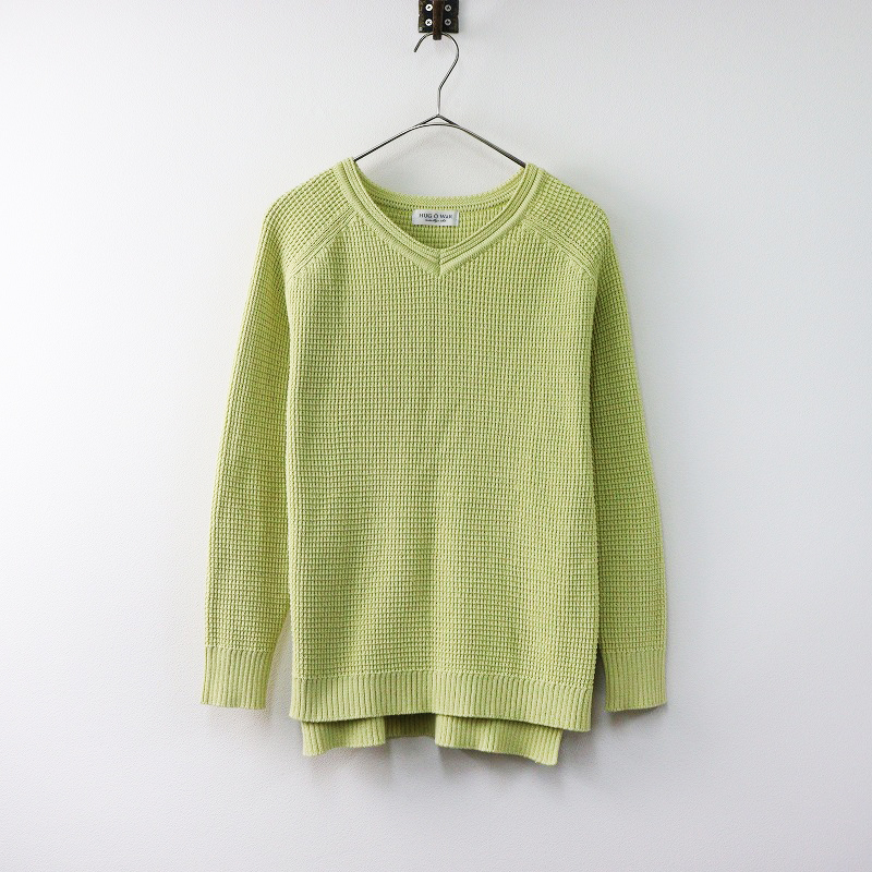 - ハグオーワー HUG O WaR ポリエステルコットン Vネックニットプルオーバー イエロー┃日本製 トップス セーター【2400014567564】
