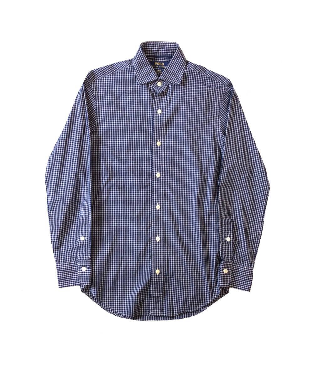 > POLO RALPH LAUREN ラルフローレン 長袖 シャツ ドレスシャツ チェック ネイビー/ホワイト SLIMFIT ストレッチポプリン メンズ XS 送250円