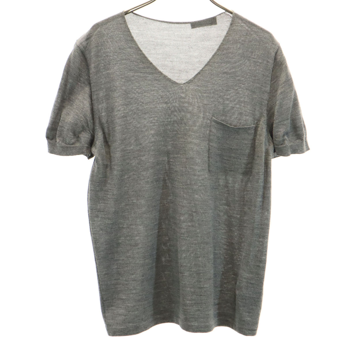 PRADA プラダ シルクブレンド イタリア製 半袖 Vネック ニット 46 グレー メンズ拍卖