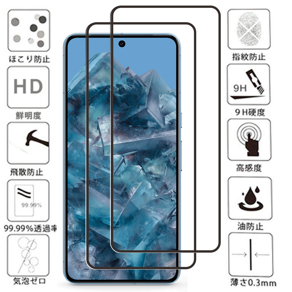 - 2枚入り ブルーライトカット Google Pixel 8 ガラス フィルム グーグル ピクセル 画面 保護 守る 頑丈 目に優しい カバー シール シート 9H