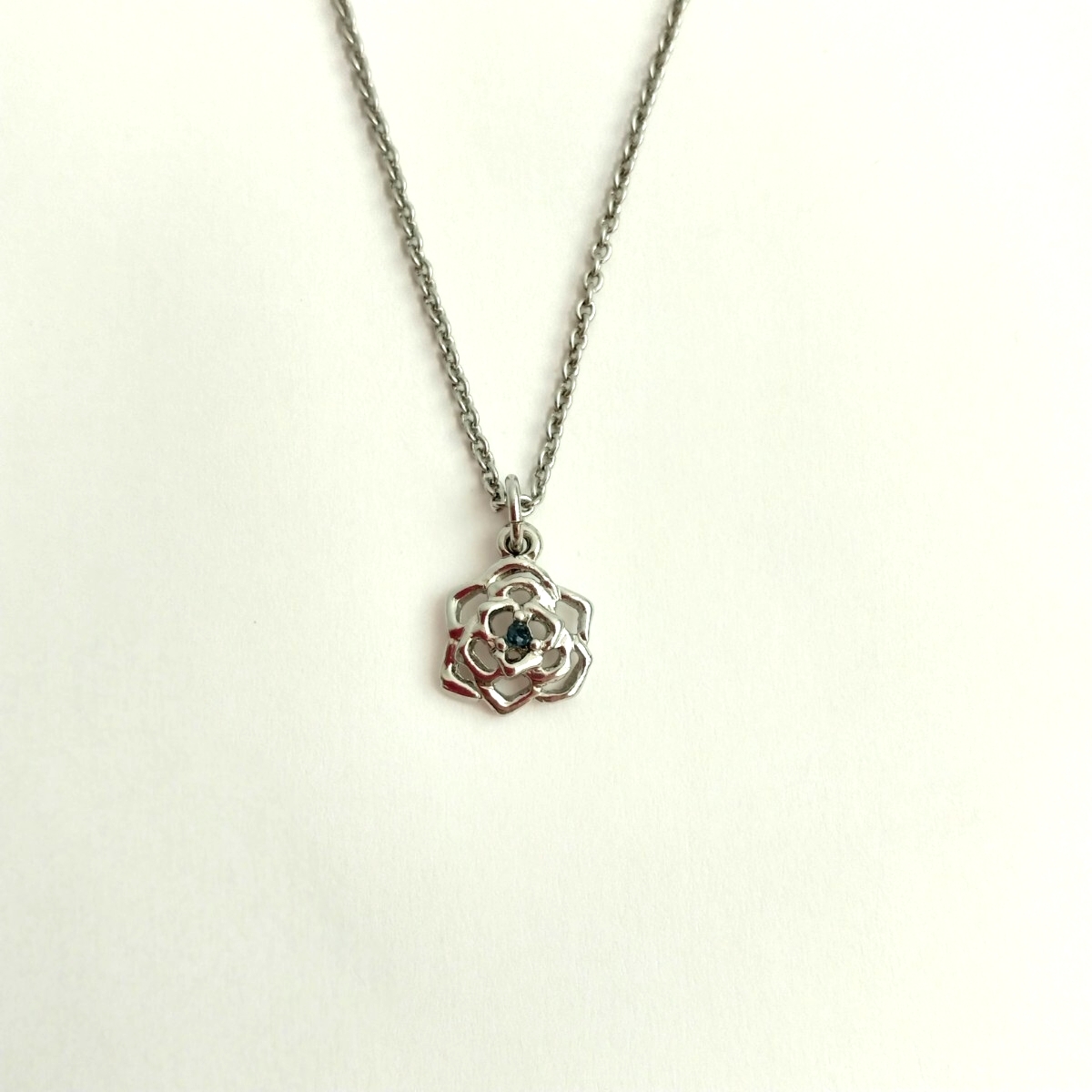- 花柄 薔薇柄 薔薇型 ローズ ブルー 青 紺 ストーン シルバー ネックレス プチネックレス レトロ ヴィンテージ 送料無料