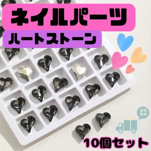 - 020I25 ネイルパーツ ハート ストーン 10個 ブラック 黒 キラキラ