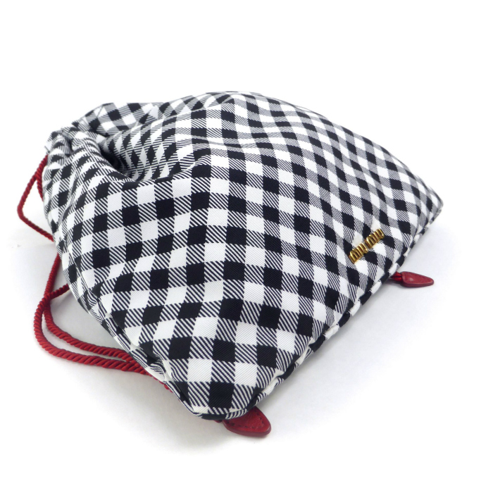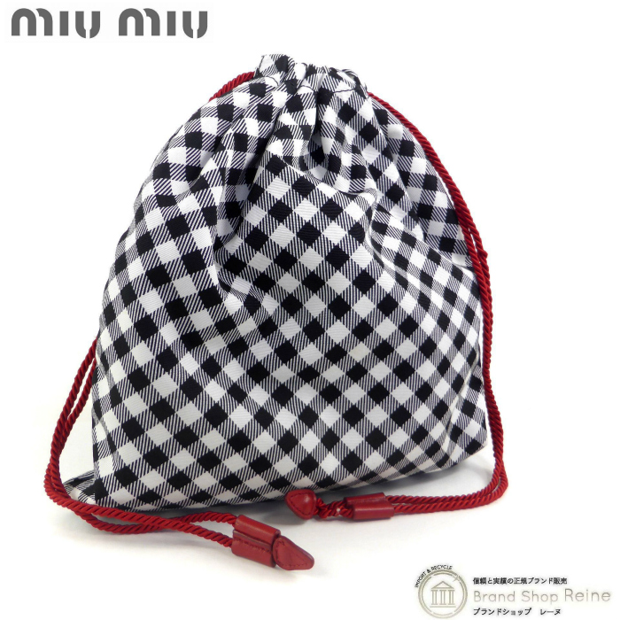 - ミュウミュウ (MIUMIU) 巾着 ポーチ ミニバッグ 5NG005 NERO×BIANCO(中古)