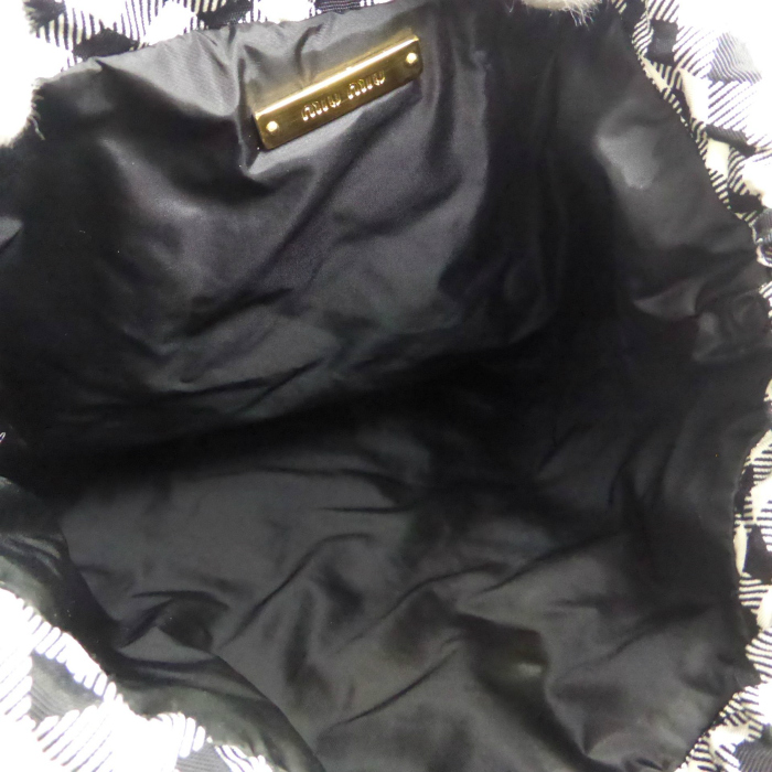 > ミュウミュウ (MIUMIU) 巾着 ポーチ ミニバッグ 5NG005 NERO×BIANCO(中古)