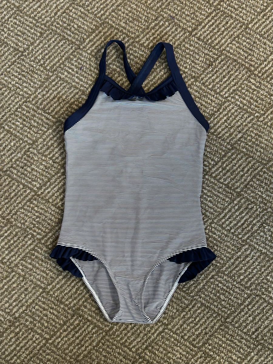 - 【美品】PETIT BATEAU プチバトー ワンピース水着 116㎝ 6ans ストライプ フリル