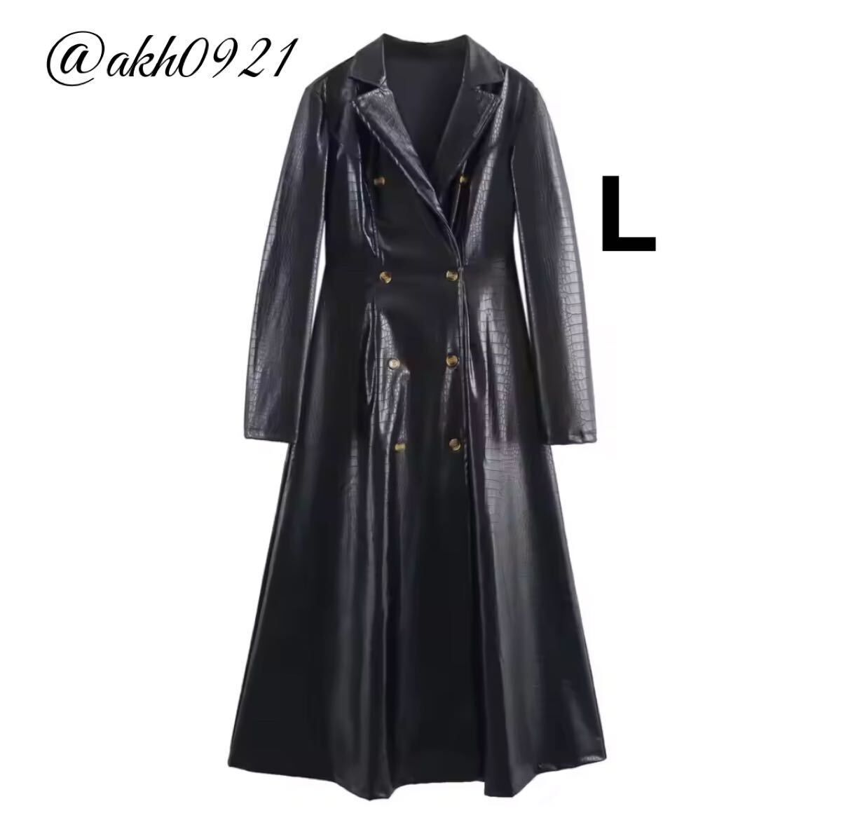 - 新品未使用★2025 秋新作★vintage ヴィンテージ レトロ フェイクレザー PU ロングコート アウター Lサイズ レディース★ZARA 好きな方に