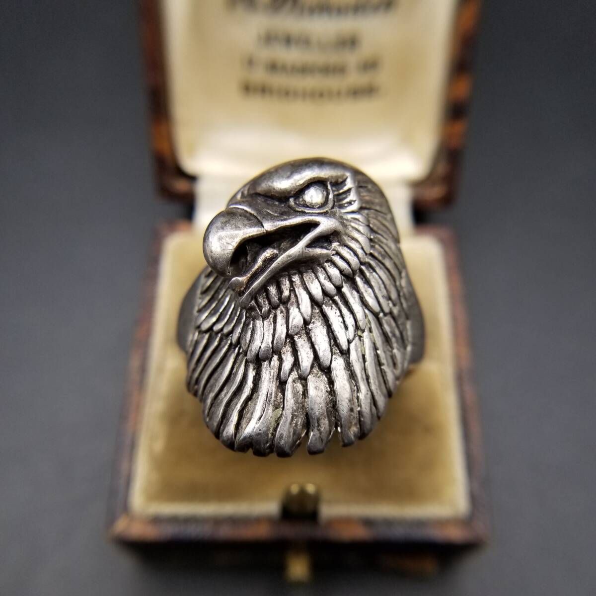 > 90's G&S 口を開ける鷲 立体彫刻 925 シルバー 米国 ヴィンテージ バイカー リング 銀 指輪 大ぶり 存在感 Eagle Head Y24-E
