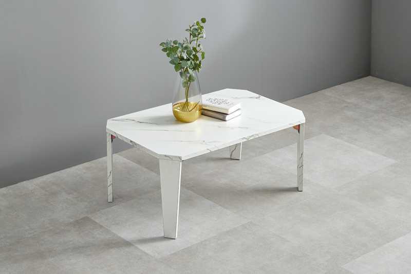 - 折りたたみテーブル ローテーブル 石目柄 マーブル ホワイト色 幅75cm 奥行50cm