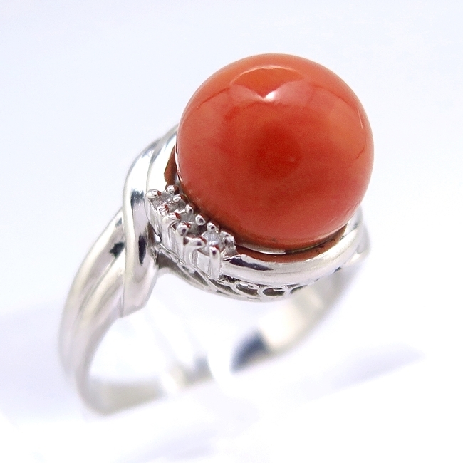 - Pt900 プラチナ 指輪 リング サンゴ 珊瑚 ダイヤモンド0.060ct 11.5号 おしゃれ【中古】/33234/10018834