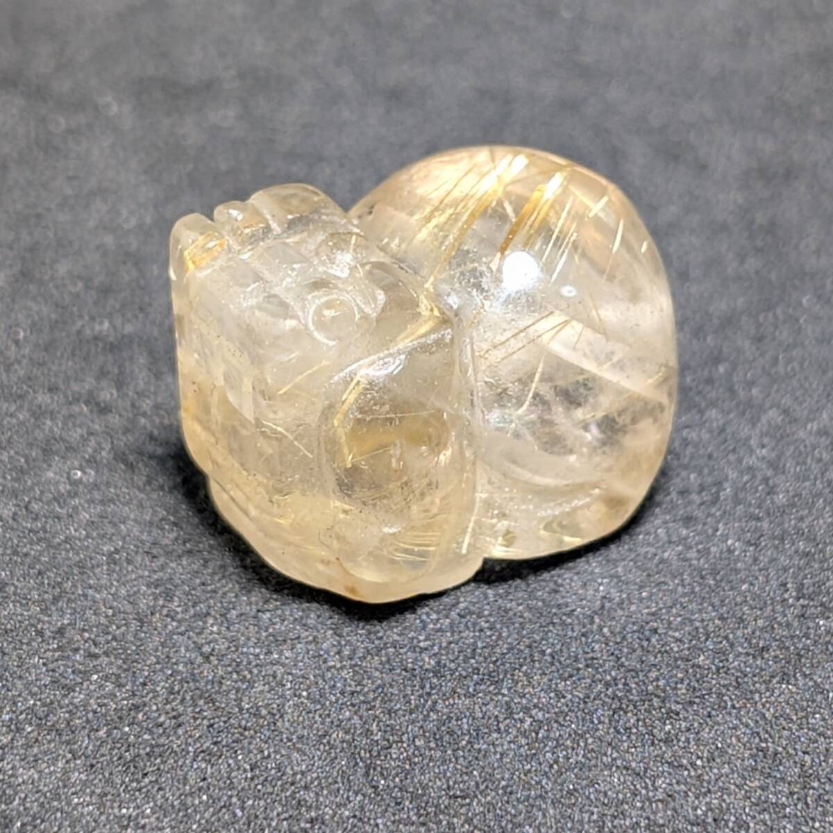 > お尻が特徴的 ゴールドルチル 貔貅 ヒキュウ 金針水晶 1点物 金銭運 お守り効果 成功へと導くパワーストーン オブジェ 置物 ギフト
