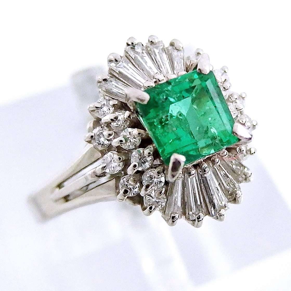 - Pt900 ★リング 指輪 エメラルド0.87ct 5月誕生石 ◇ダイヤモンド0.28ct/0.20ct ●12号 ■ソーティング付き 【中古】 /s21190/10004729
