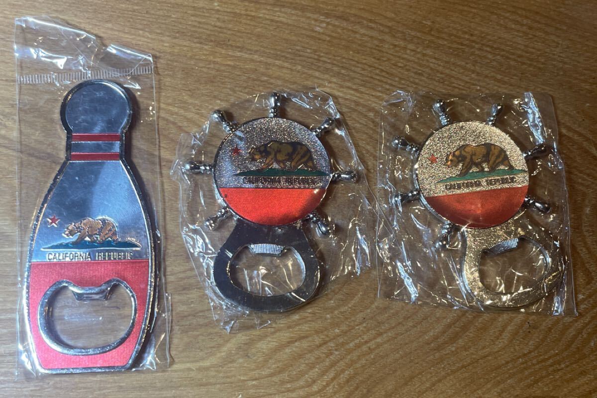 - カリフォルニア州旗の熊の絵柄が描かれた栓抜き付き マグネットタイプ CALIFORNIA REPUBLIC 3セットまとめ売り