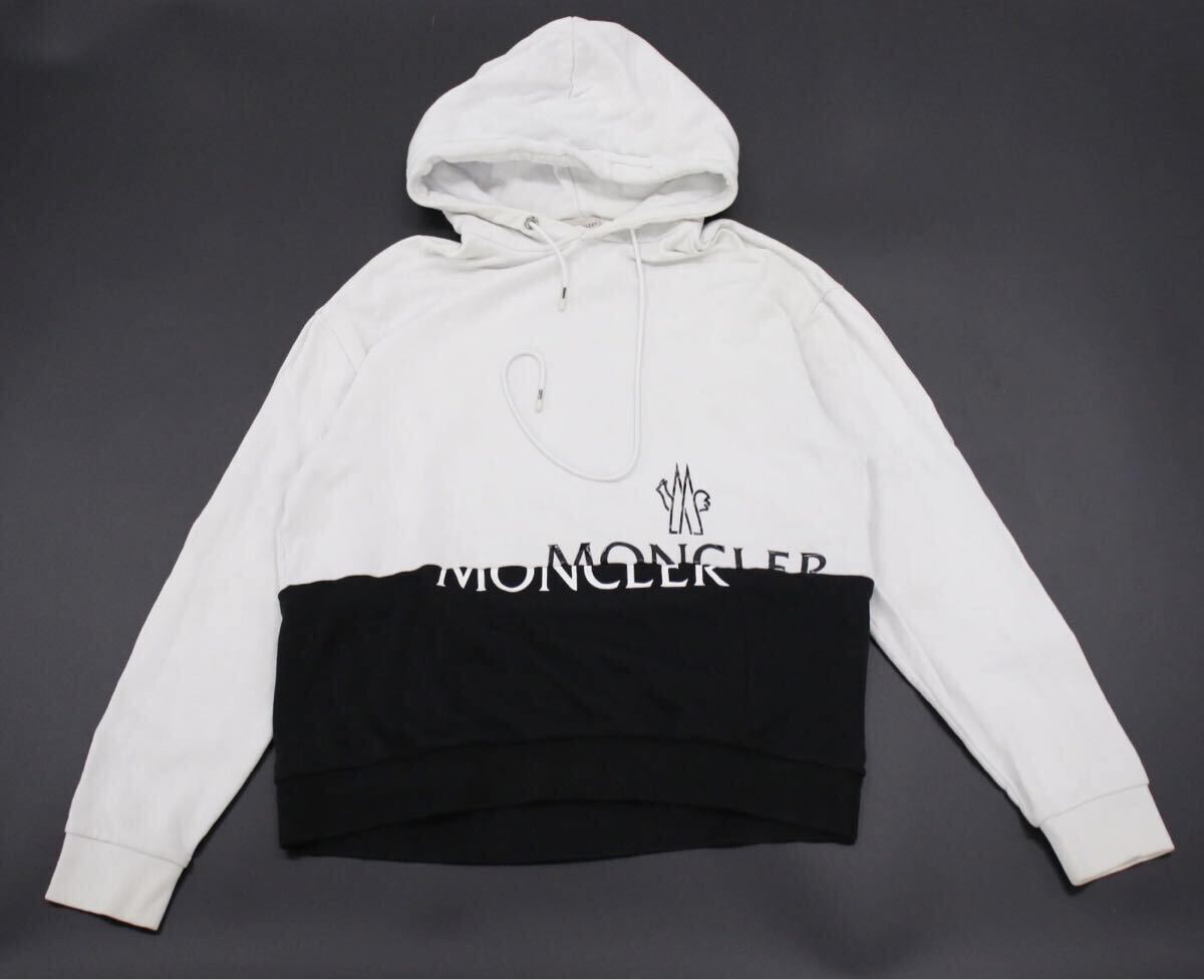 - モンクレール バイカラーロゴフーディ 白 黒 XL