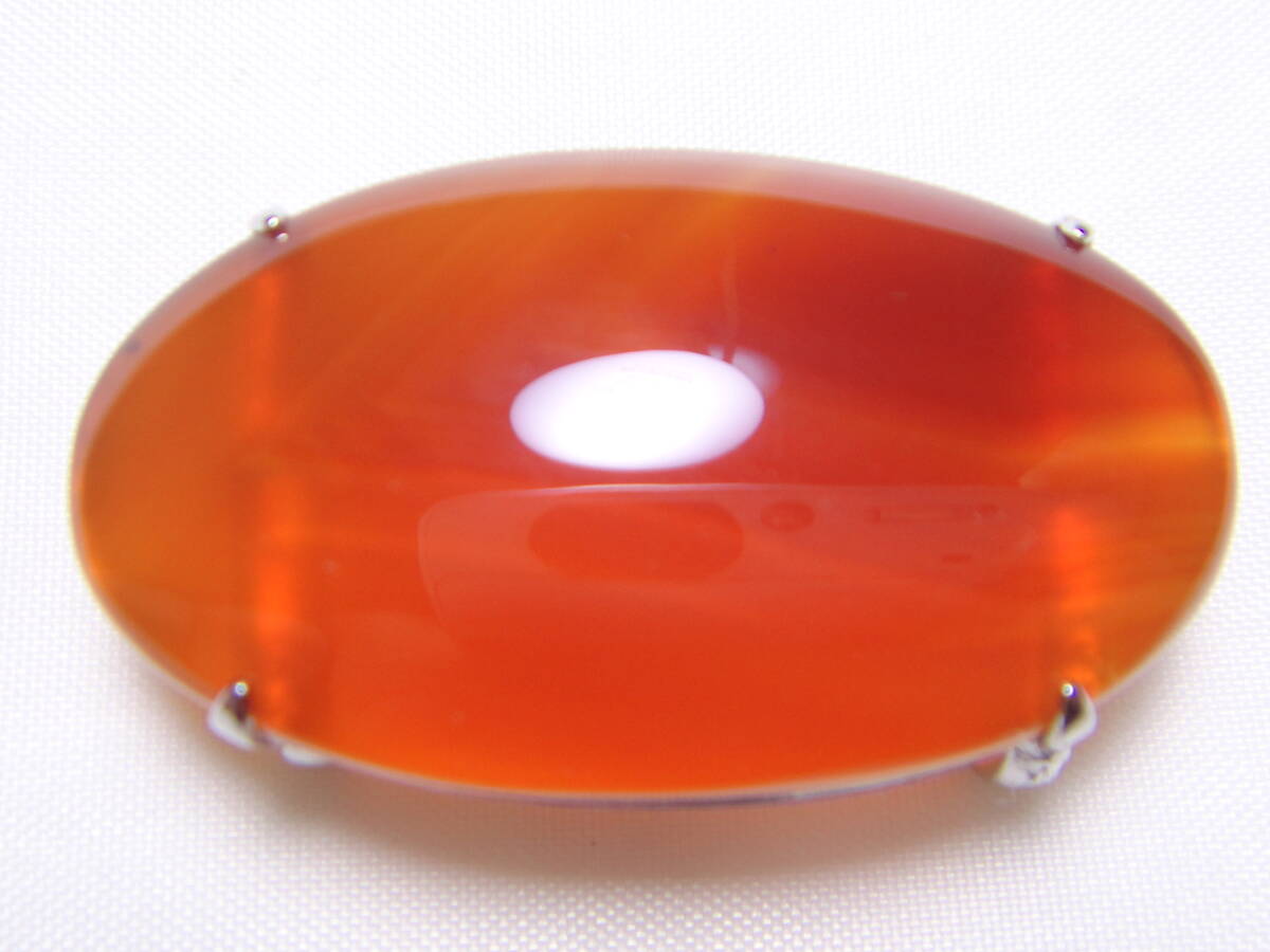 - 天然石 帯留め カーネリアン 良い模様 レトロ ヴィンテージ Y760