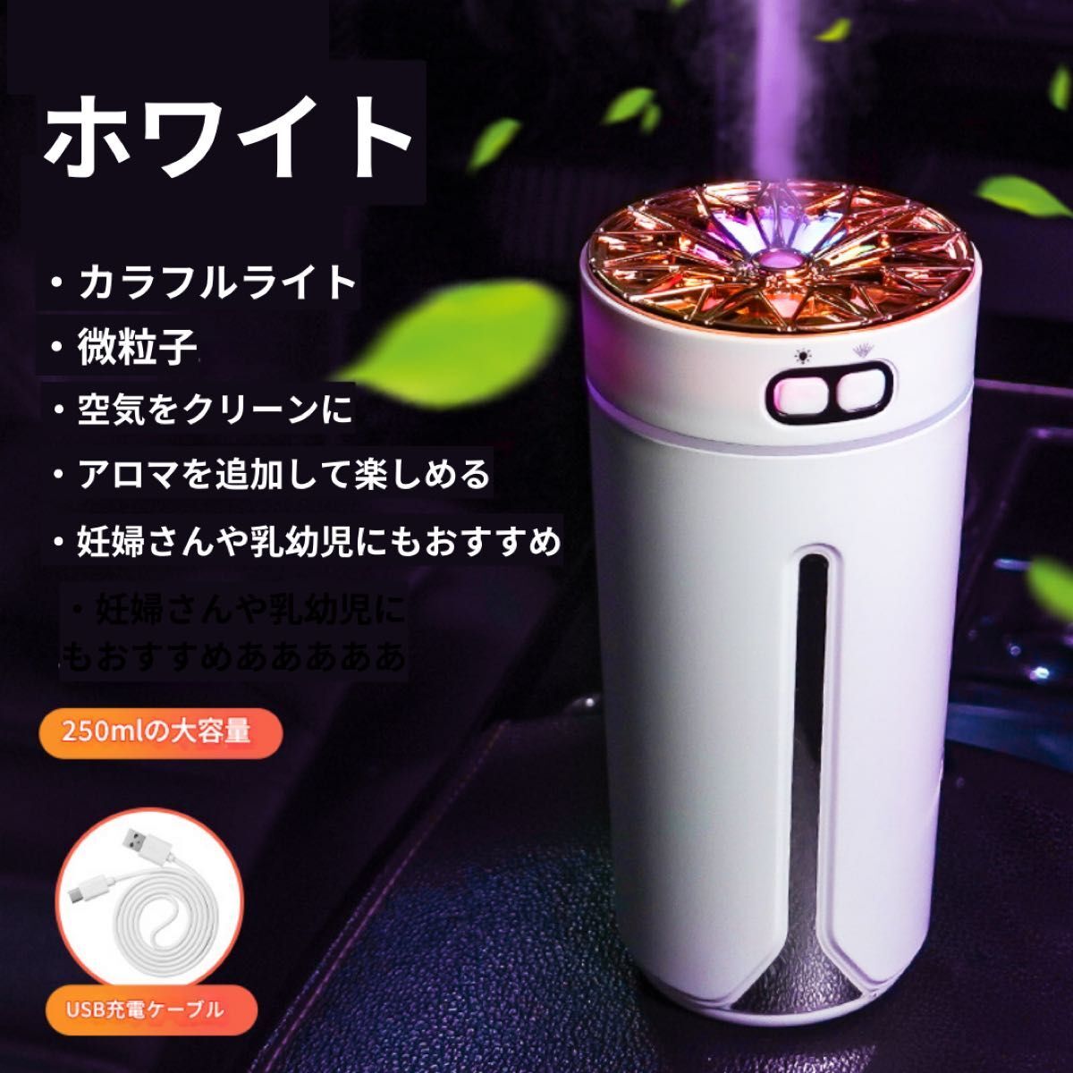 - 加湿器 LEDイルミネーション 車内アロマディフューザー 充電式 ホワイト