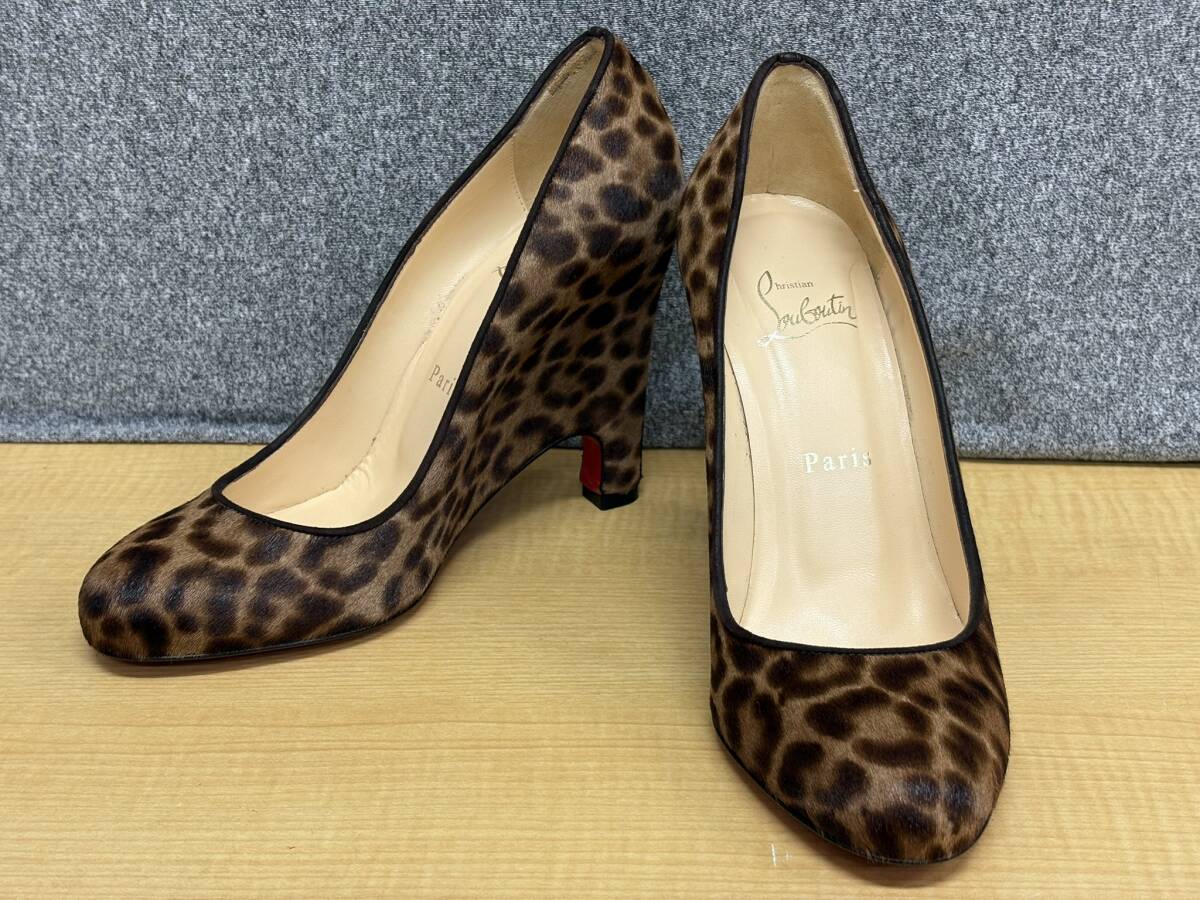 - 美品クリスチャンルブタンChristian Louboutinレオパードハラコウェッジパンプス★サイズ37.5/24.5cmヒョウ柄イタリア製★A20660