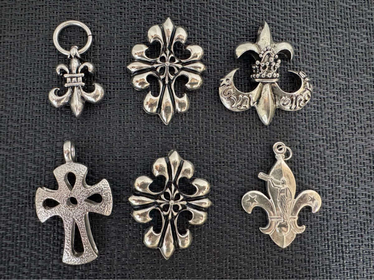 - ネックレストップ クロムハーツ風 チャーム ちゃアクセサリー 6個まとめ シルバー系 D-707