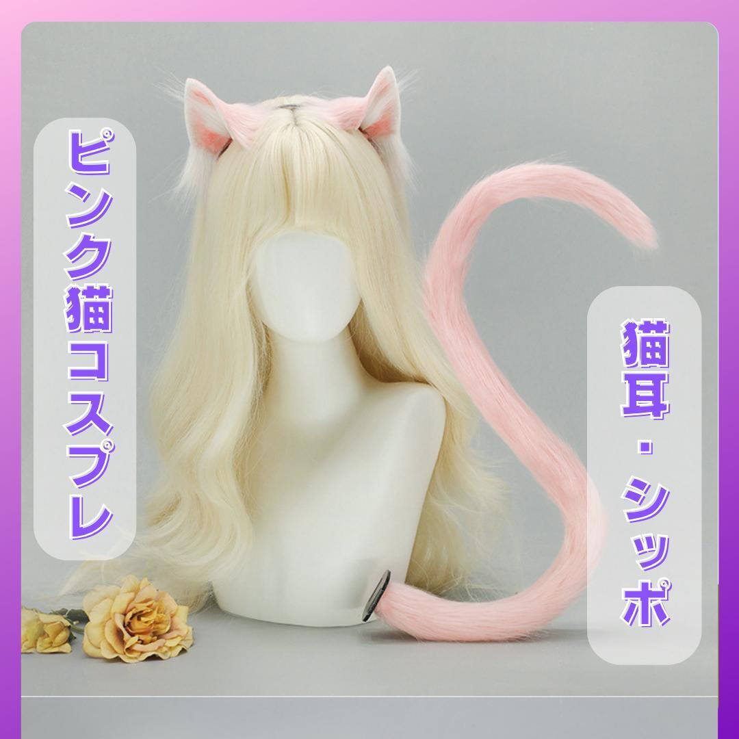 - 猫耳 シッポ 尻尾 セット コスプレ ねこ ネコ ハロウィン 仮装1165 ピンク 桃色 ロリーター 姫系 しっぽ